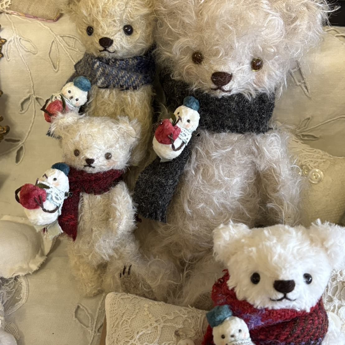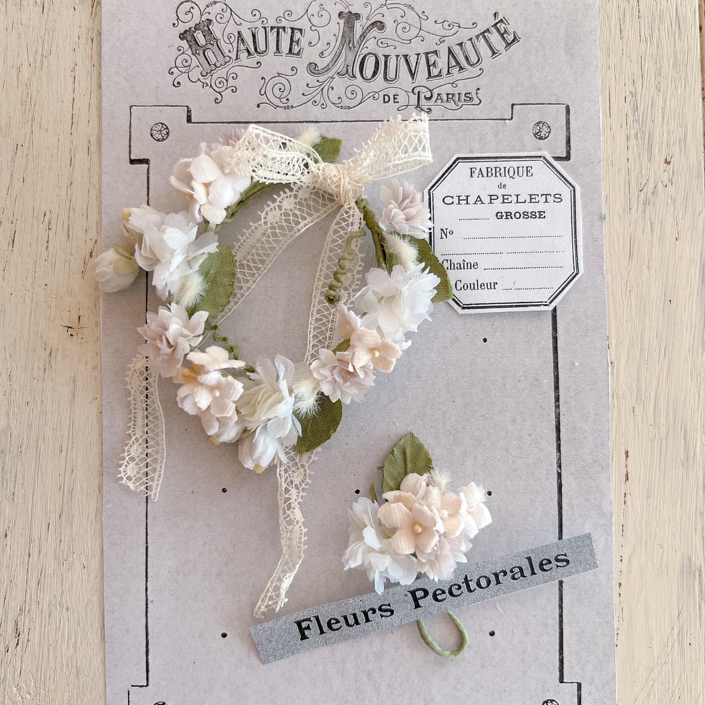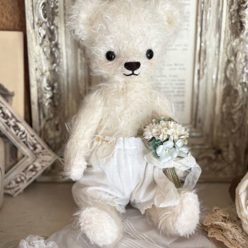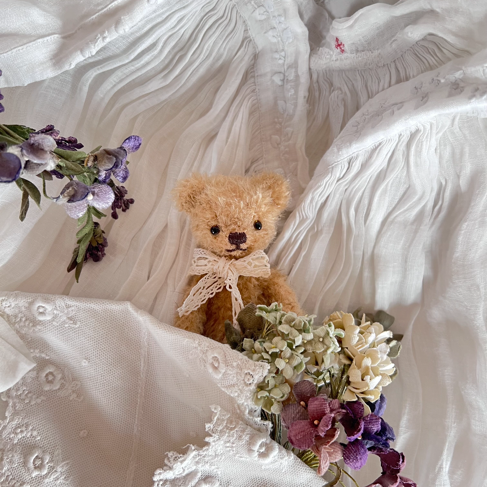 テディベアやドールのそばに置くことを想定した、布花や小さなオブジェも制作しています。