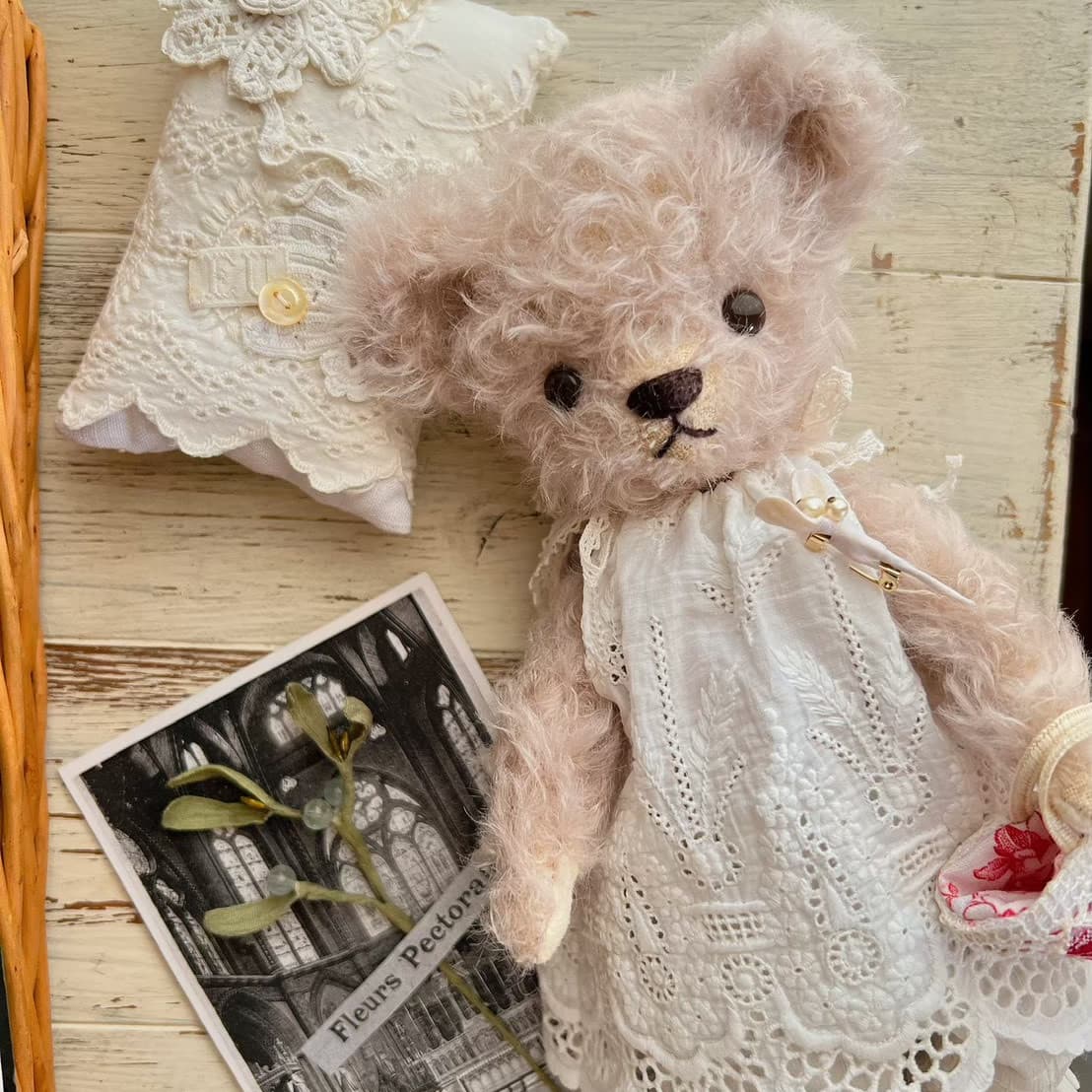 テディベアやドールのそばに置くことを想定した、布花や小さなオブジェも制作しています。